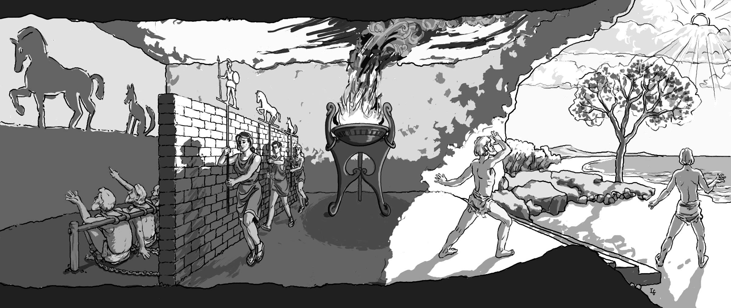 Plato illustrates our condition by imagining humanity as chained inside a cave and presented with shadows on the wall reflected by a fire. His point is that we never experience reality as it really is, only its shadowy reflection. The work of the philosopher (and the scientist) is to look past the shadows, to discover the truth lurking behind them; perhaps even escape the cave entirely.